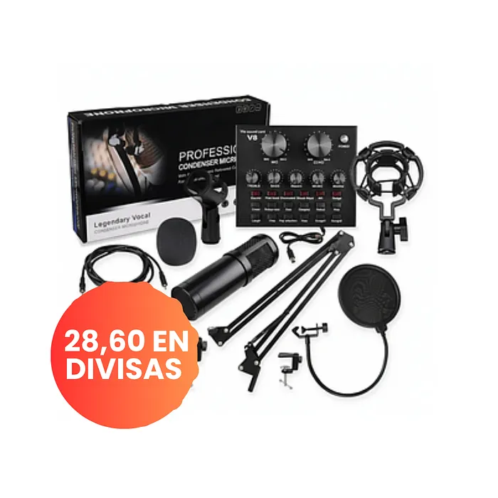 | Producto | Kit de micrófono de condensador BM800 con tarjeta de sonido V8S. |